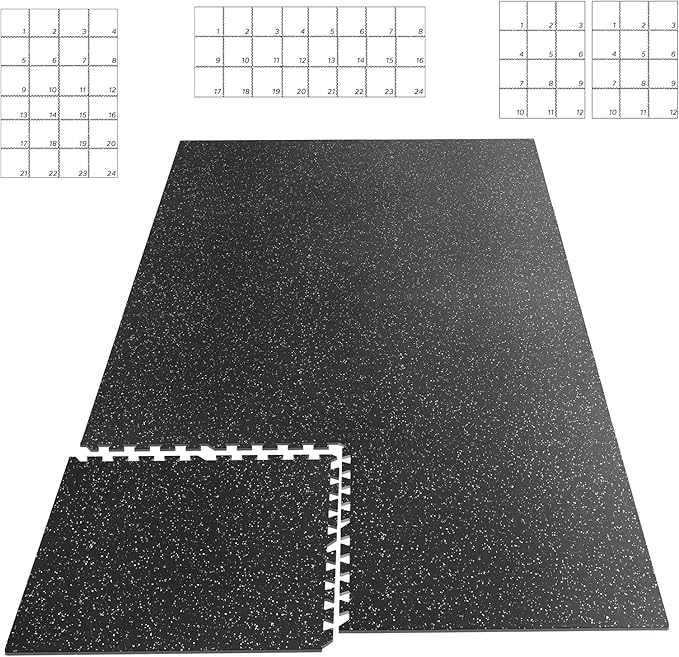 0.56” Thick 12 Pcs 48 Sq Ft Exercise Equipment Mats – High-Density Rubber Top EVA Foam Interlocking Mats, 24x24in Tiles, Heavy-Duty Treadmill Mat for Hardwood Floors, Home Gym Mat