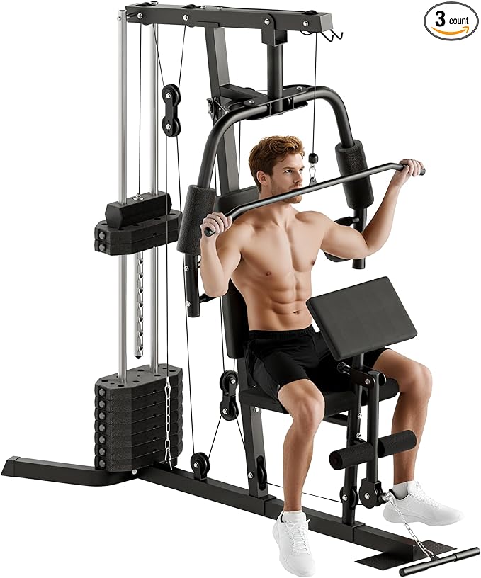 Home Gym System, Multifunction Workout Station with 100Lbs Weight Stack, 100Lbs Resistance for Full Body Workout Machine